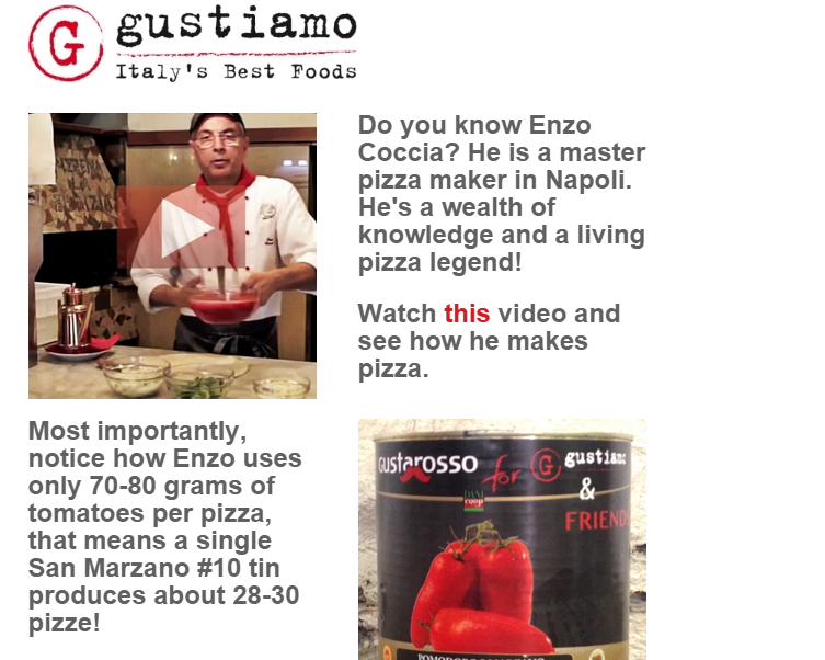 Watch this video and see how he makes pizza. Most importantly, notice how Enzo uses only 70-80 grams of tomatoes per pizza, that means a single San Marzano #10 tin produces about 28-30 pizze!